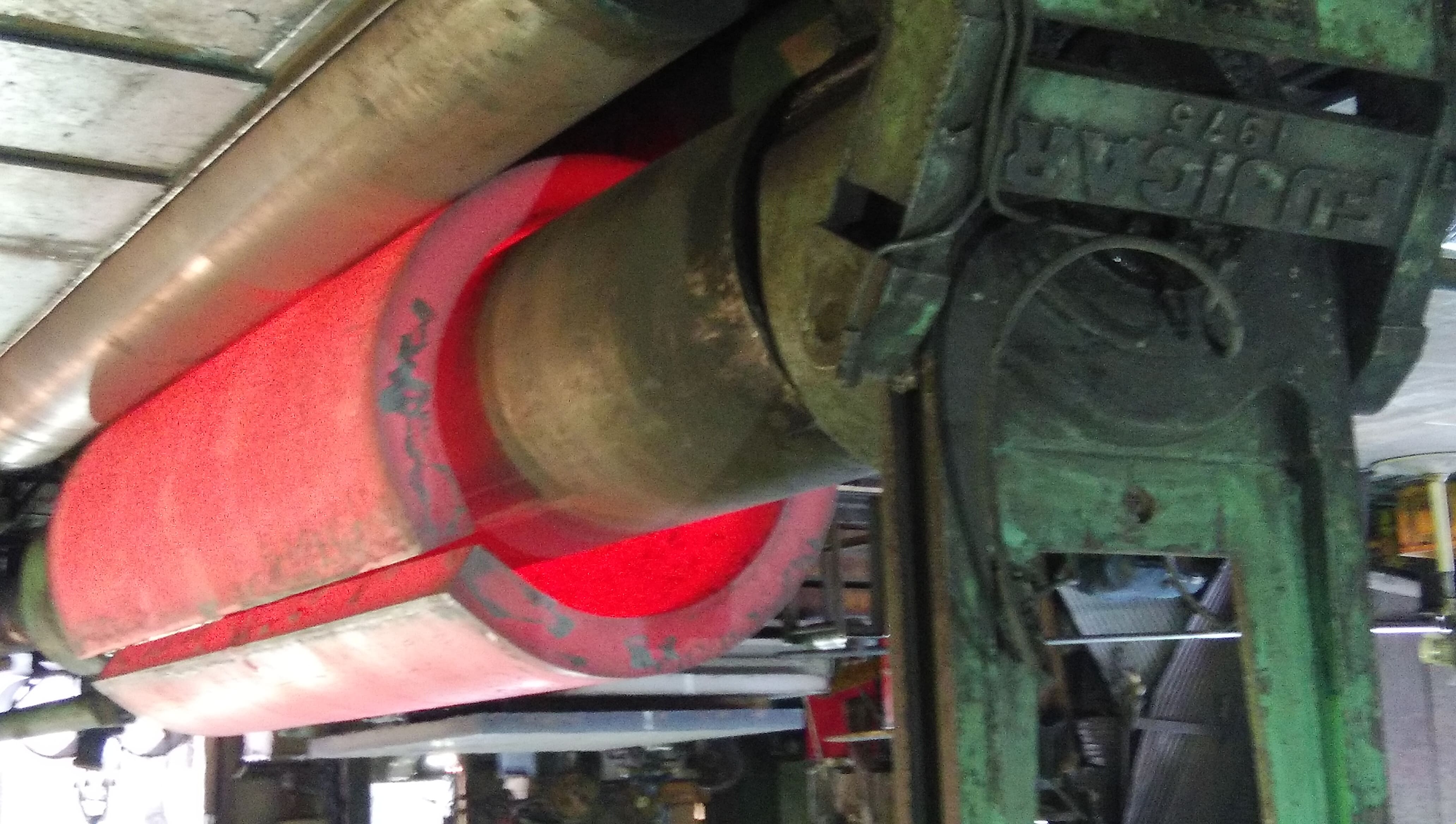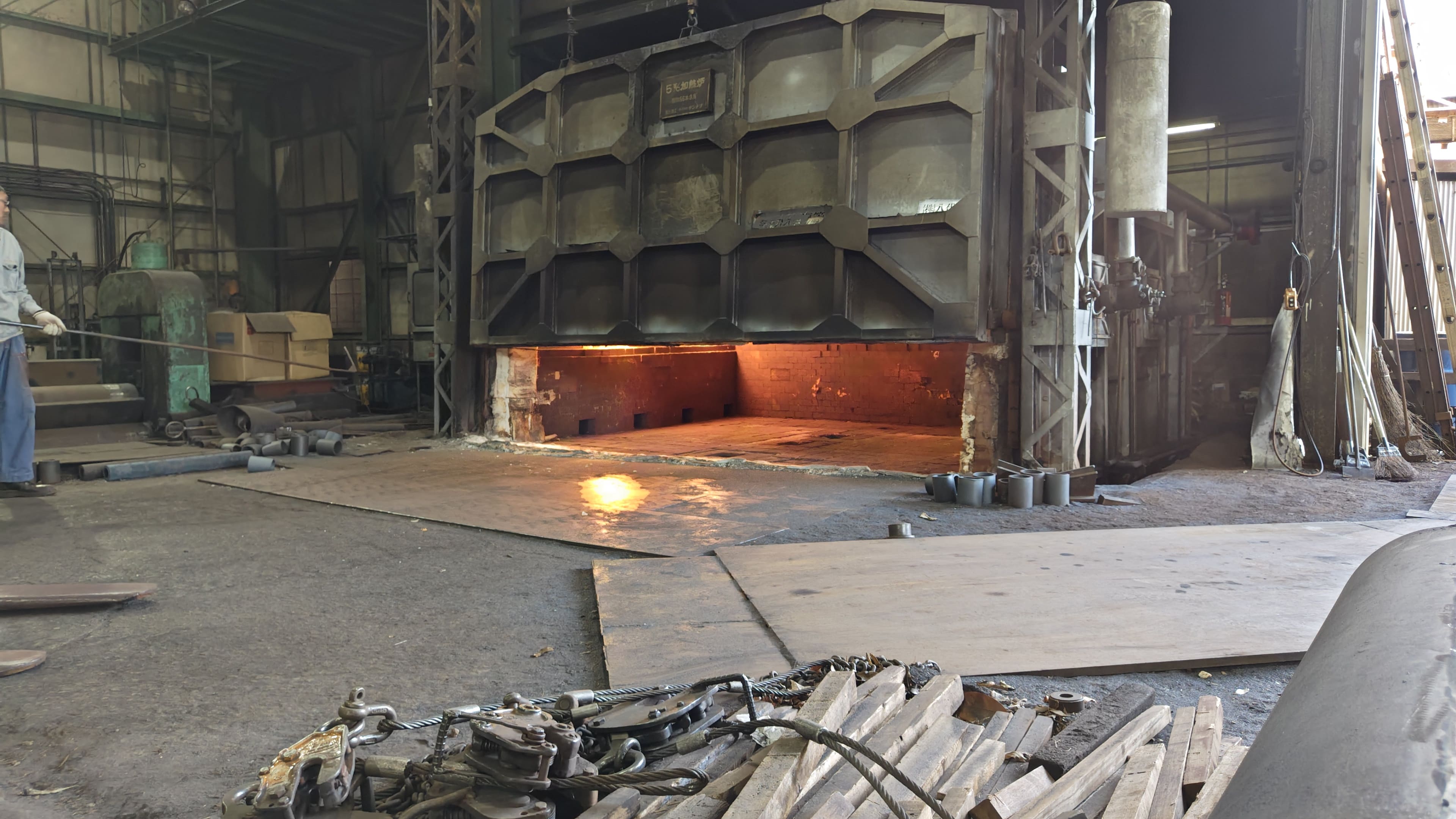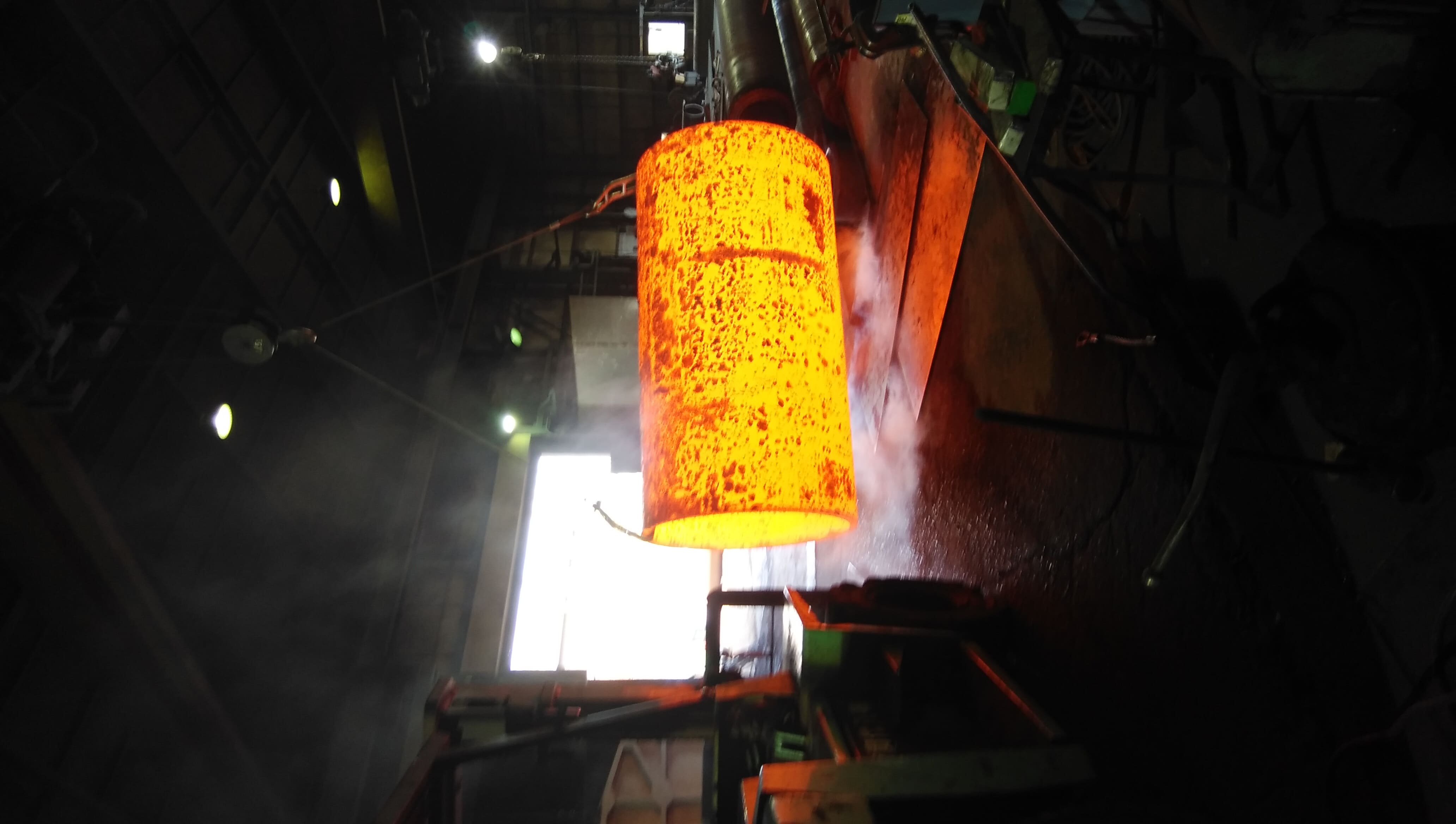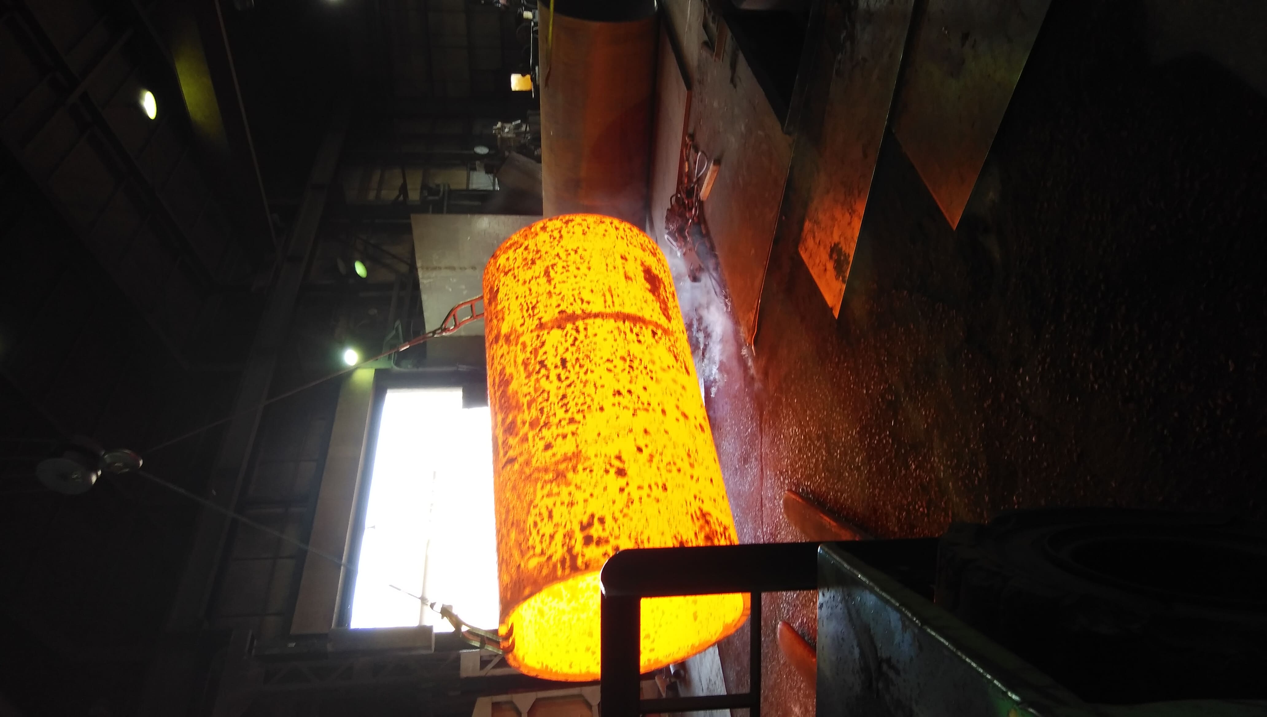 炉に円筒状に加工した鋼材を投入し、形状を整えます。