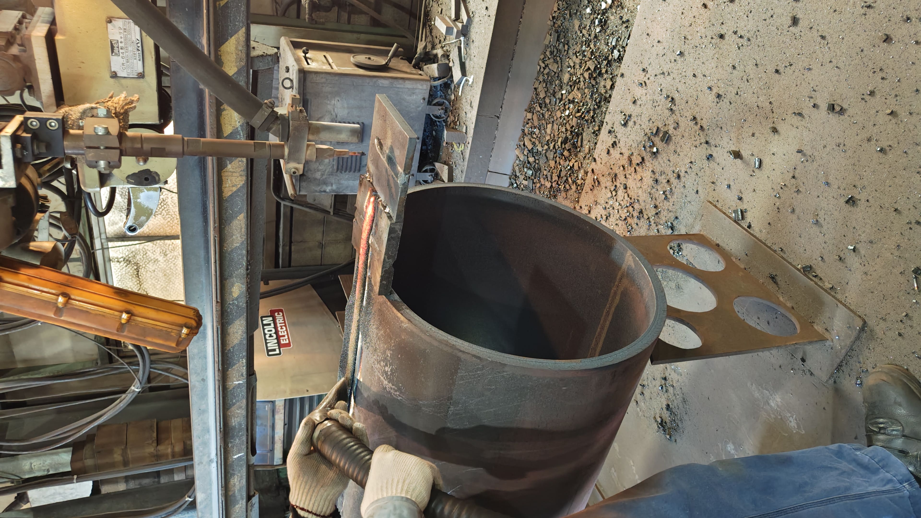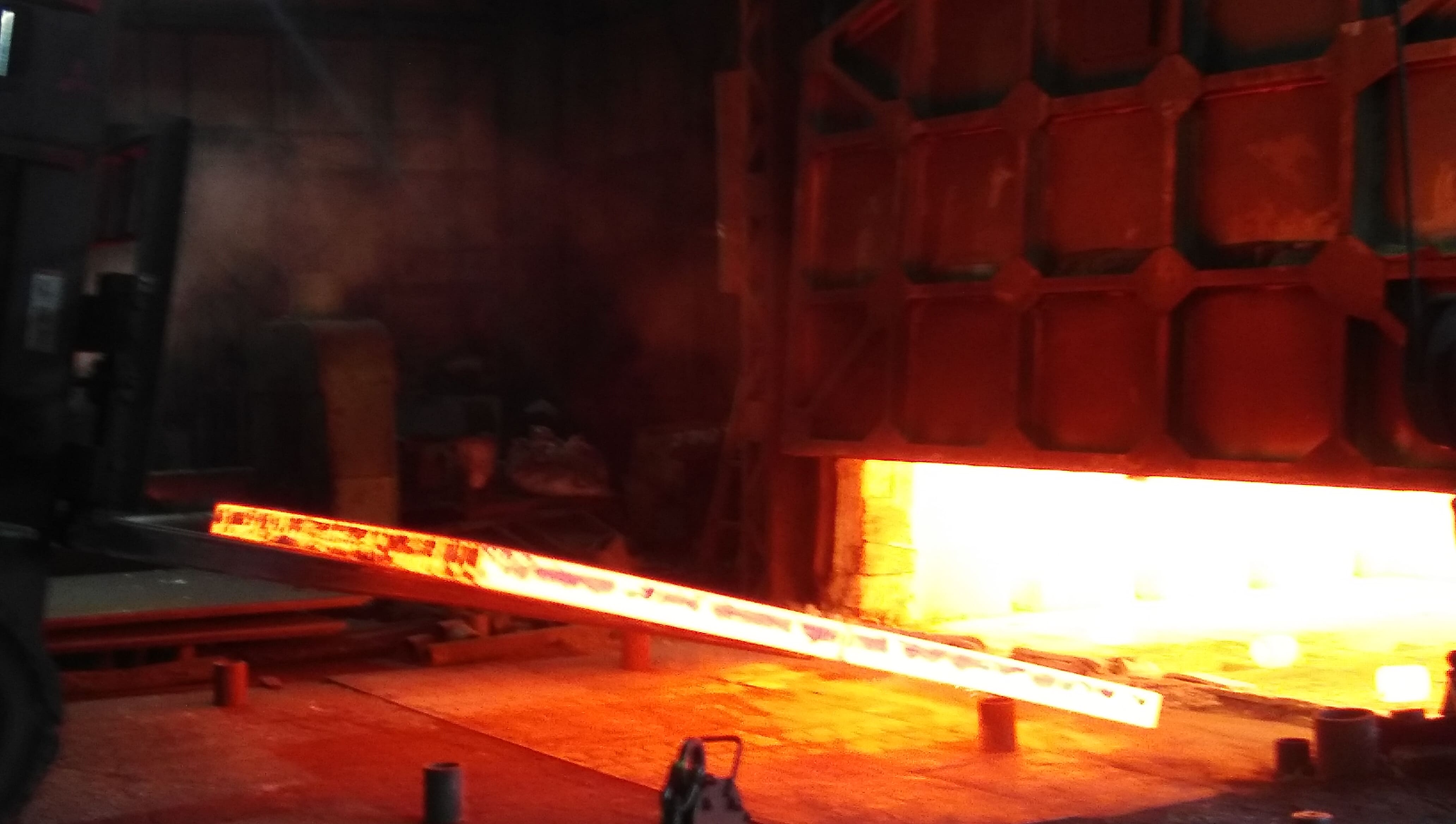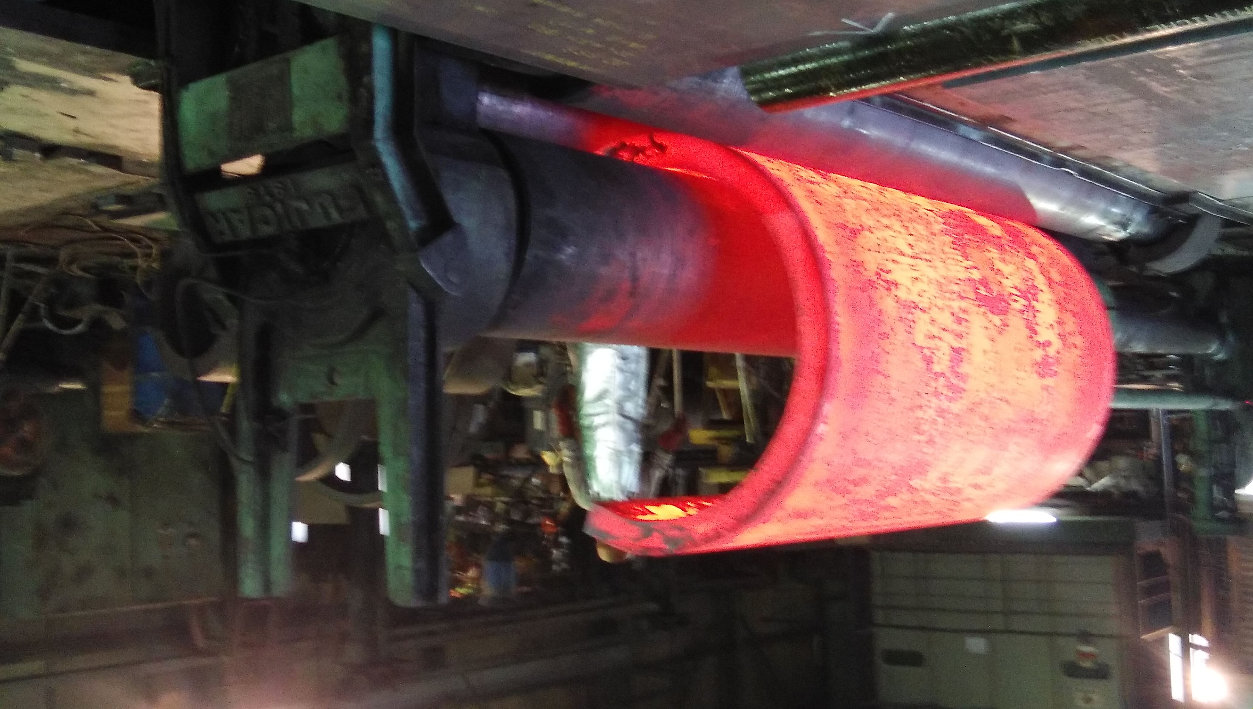 炉に円筒状に加工した鋼材を投入し、形状を整えます。