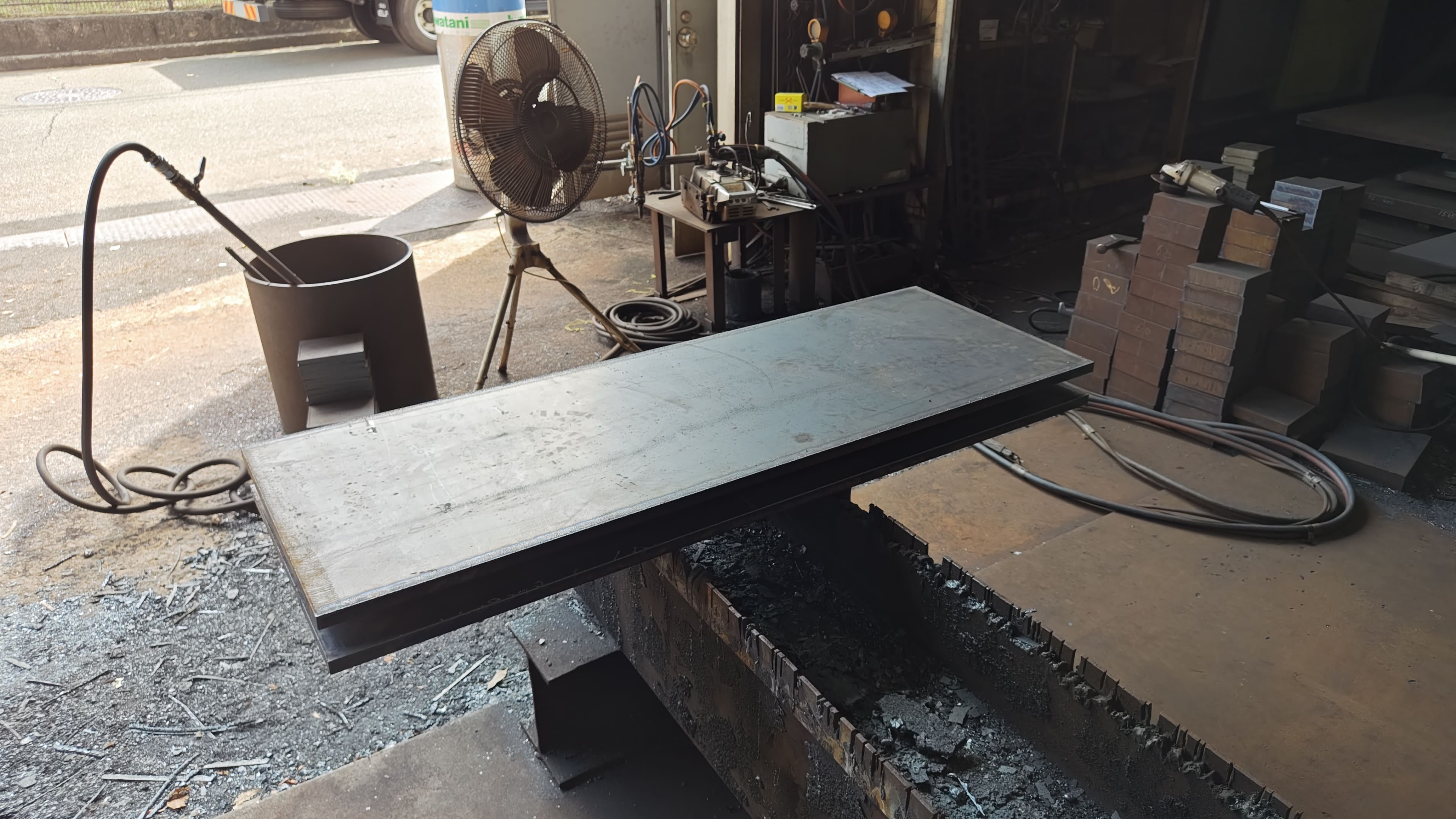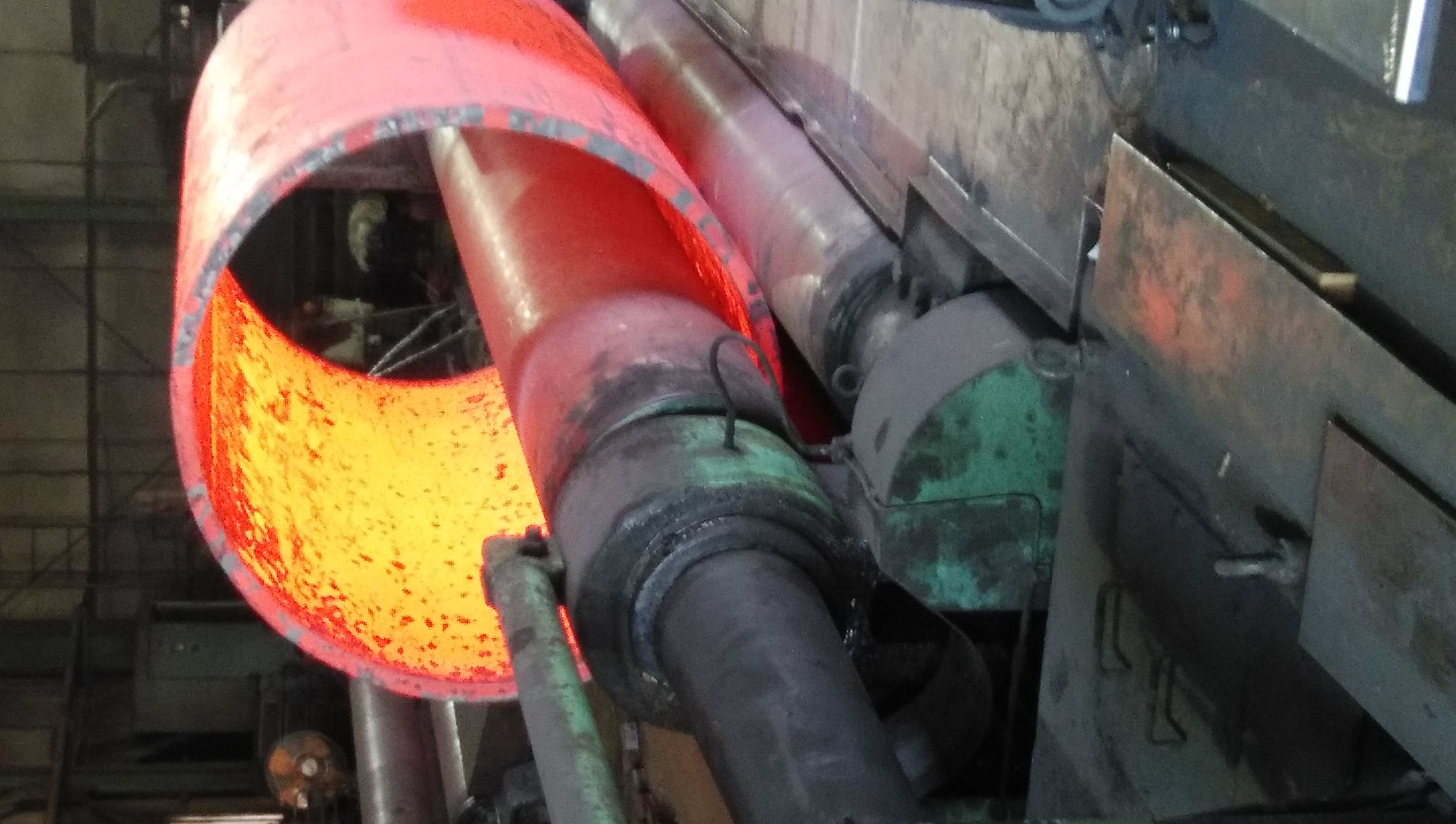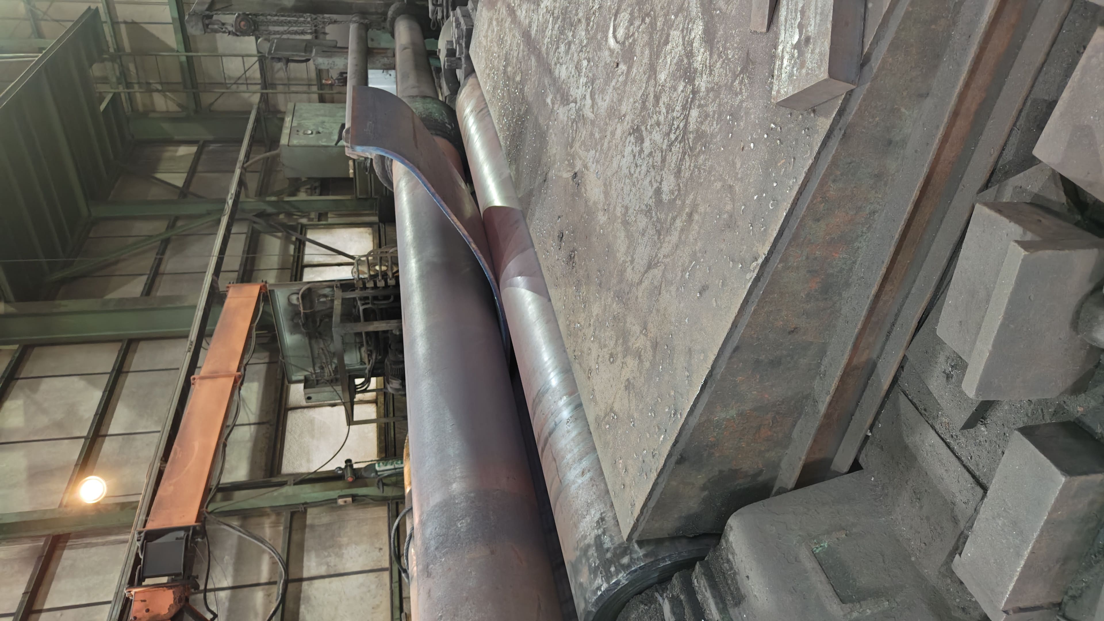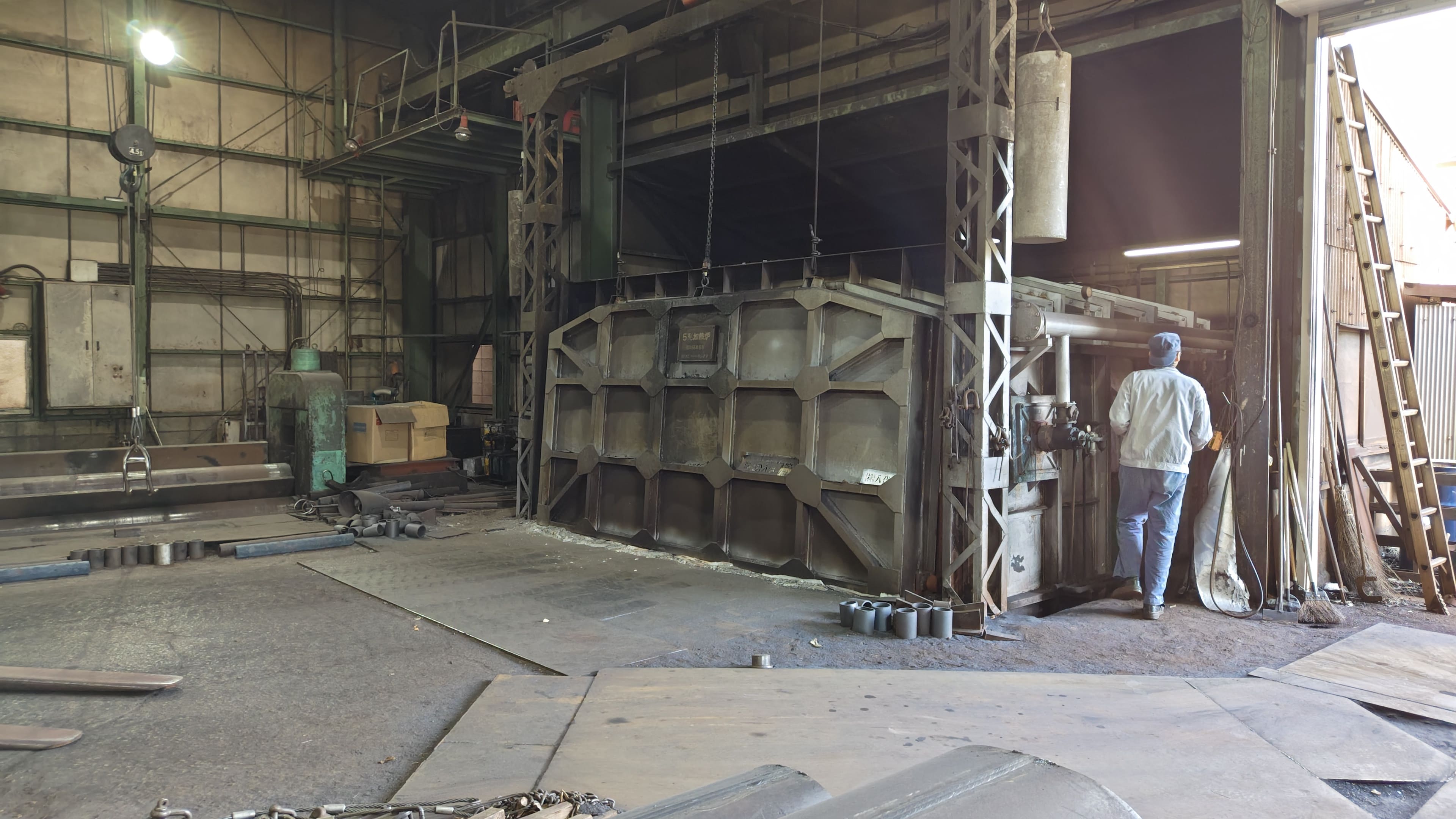 炉に円筒状に加工した鋼材を投入し、形状を整えます。
