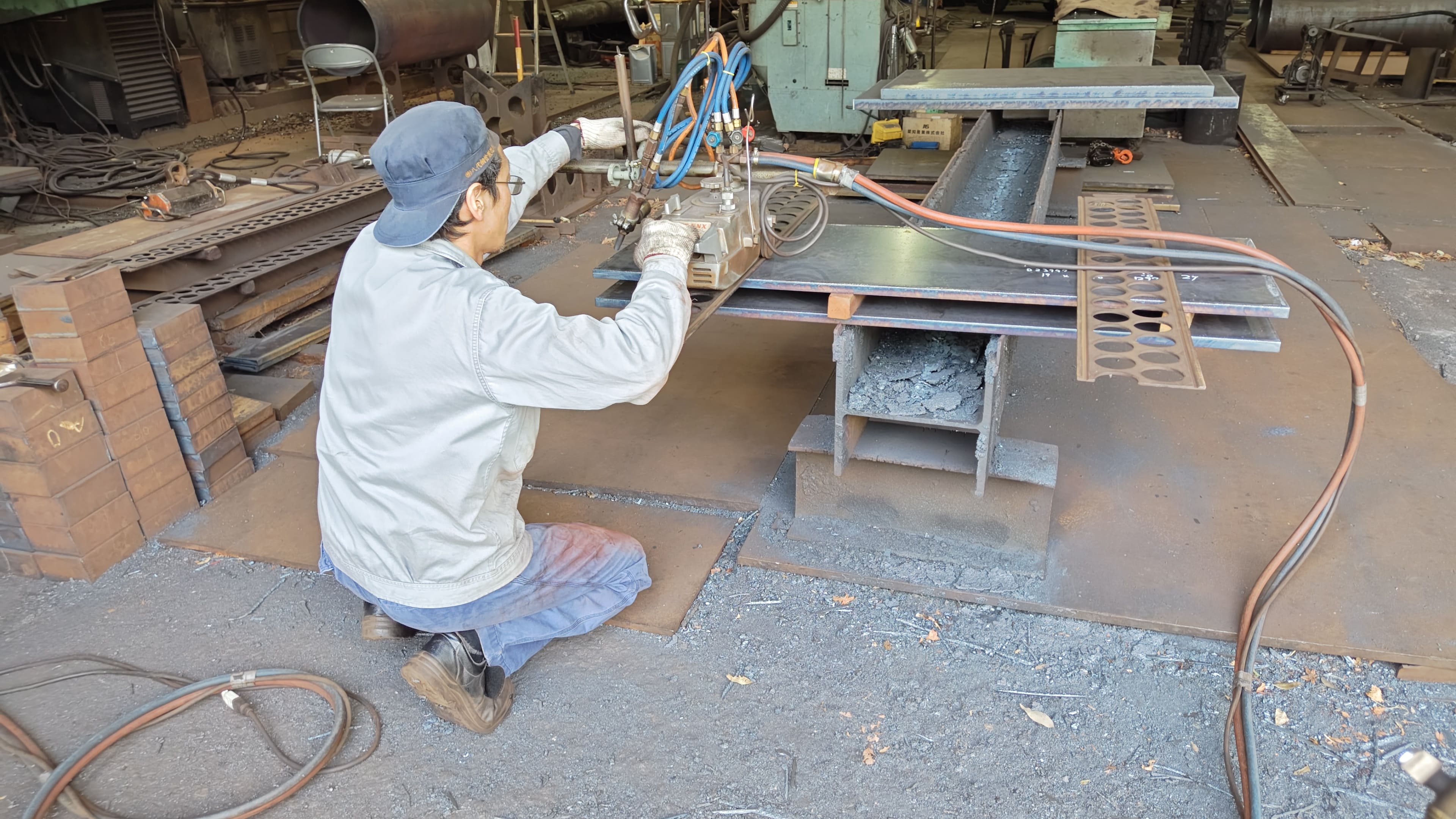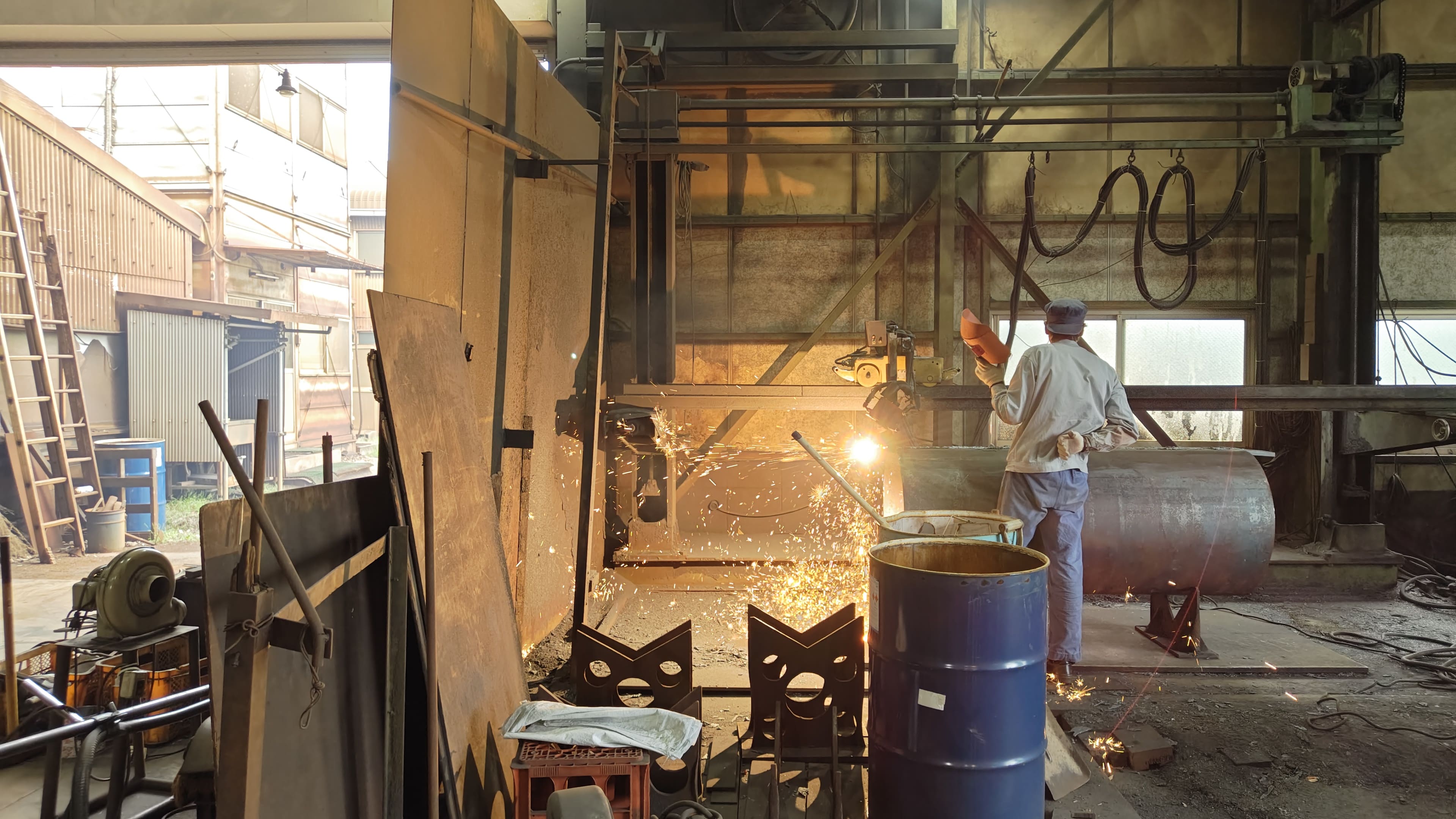 管状に加工した鋼板を溶接し、鋼管に仕上げます。